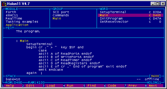 Modules: Holon 11 provides the system modules in source text; every word of the system is clearly defined and commented, including the low level kernel routines.